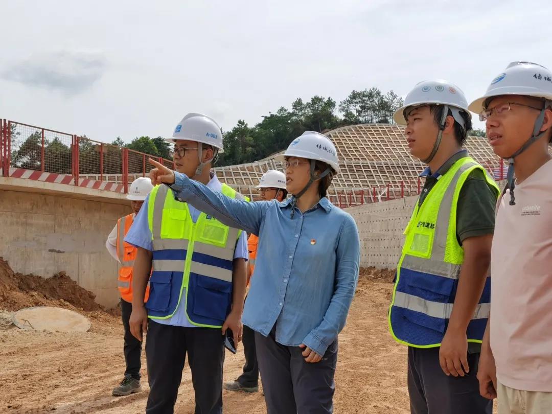 ▲ 綠城水務公司副總經理阮靜在現場指導那平江水質凈化廠施工建設,2年間,她帶領團隊攻克6個污水處理廠和10個污水管網項目建設。