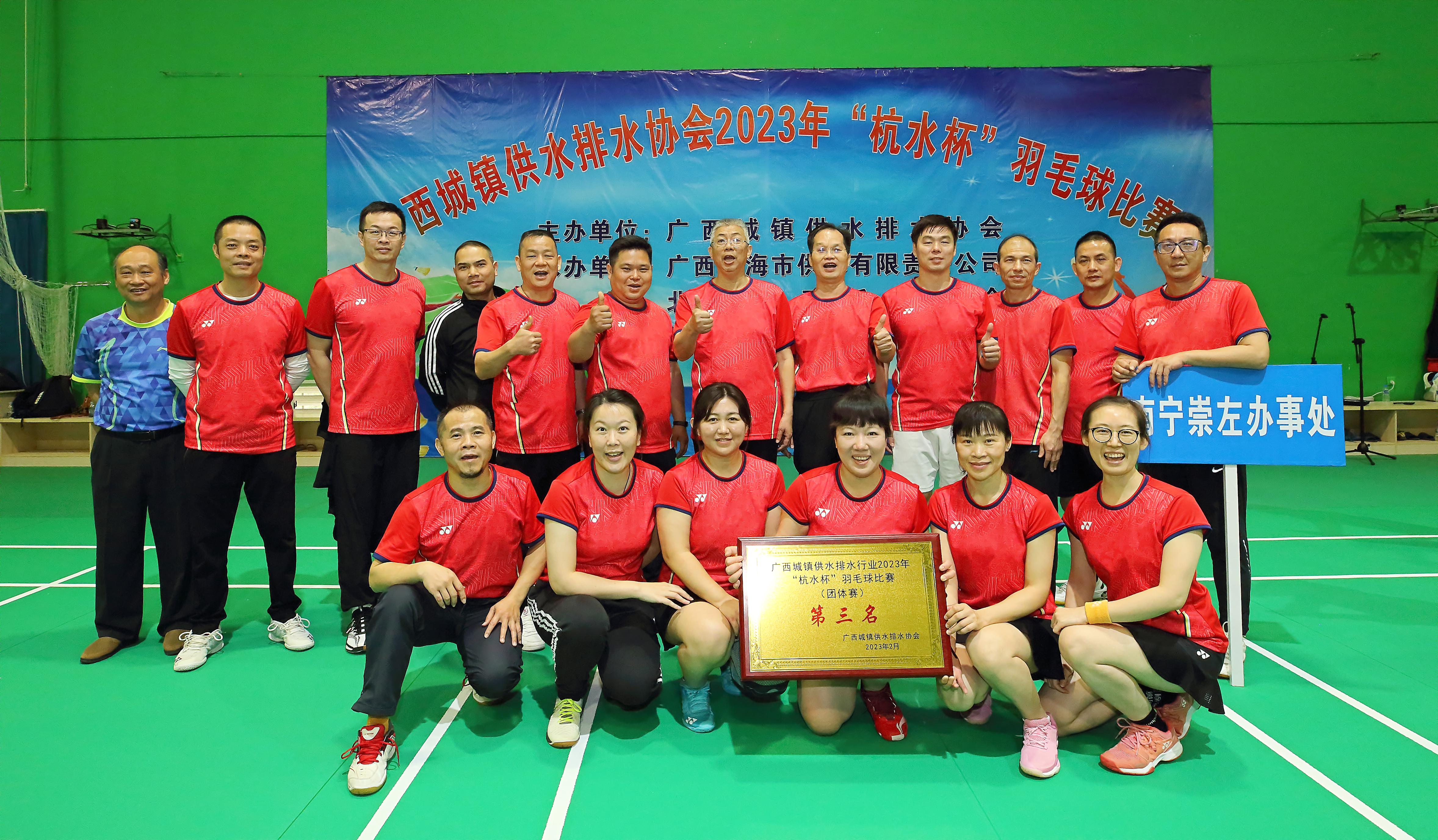 2月22日至24日,廣西城鎮(zhèn)供水排水協(xié)會(huì)(以下簡稱廣西“水協(xié)”)2023年“杭水杯”羽毛球比賽在北海市供水有限責(zé)任公司舉行,賽次分團(tuán)體賽和領(lǐng)導(dǎo)組單項(xiàng)賽,經(jīng)過三天激烈的角逐,綠城水務(wù)公司13名隊(duì)員所在辦事處——南寧崇左辦事處最終取得了團(tuán)體賽第三名的好成績。