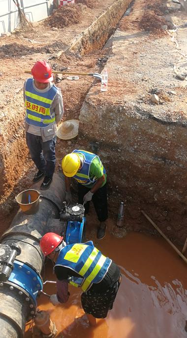 為確保項目加快推進,綠城水務派出精兵強將,連續晝夜奮戰,從項目獲批建設到通水,僅用了20天時間便順利完成通水目標。8月19日,隨著閥門開啟,清澈的自來水流進南寧數字科技學院,確保了學院在開學前正式用上了水質優良、水壓穩定的自來水,解決了學校發展的燃眉之急。